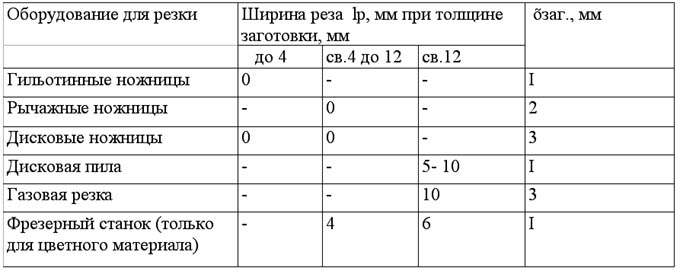 При расчете размера заготовки, получаемого путем отрезки (вырезка