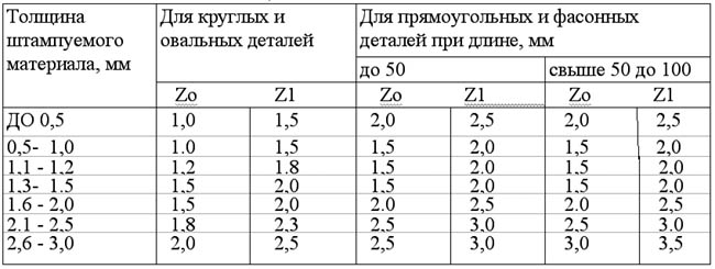 величина боковой перемычки по краю заготовки. Величины Zo и Z1 выбираются