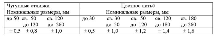 Допустимые отклонения на размеры отливок в песчано-глинистые формы