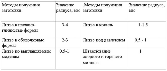 литейных и штамповочных уклонов (табл.3,10) и радиусов закруглений