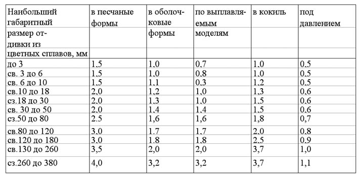 Примечание: Меньшие значения для отливок малых габаритов, большие - для