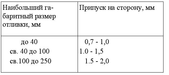 Припуски на сторону при литье, мм