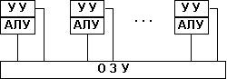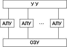 Архитектура с параллельными процессорами. Здесь несколько АЛУ работают под управлением одного УУ. Это означает, что множество данных может обрабатываться по одной программе - то есть по одному потоку команд.