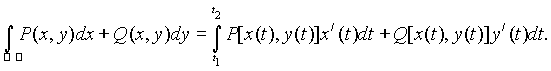 Вычисление криволинейного интеграла второго типа также сводится к вычислению определенного интеграла.
