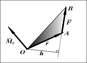 Модуль момента MO равен произведению модуля силы F на ее плечо h, равное расстоянию от моментной точки О до линии действия силы: